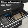 • Large Storage Space: The tool cart is equipped with 5+2 drawers of different sizes, and a large storage space on the bottom. The top storage rack provides additional space for arranging the workshop accessories you need